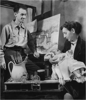 Friebert was born in Buffalo but moved as an infant with his family to Milwaukee, where he remained his entire life. His father, a tailor and union organizer, instilled his youngest son with his Socialist beliefs. Thwarted by the Great Depression from his dream of becoming a doctor, Friebert went to pharmacy school at Marquette University. When he was reduced to part-time work, he decided to pursue a favorite hobby: art. He joined a sketch group, where he met artist Betsy Ritz, and they were married in 1937. Friebert subsequently earned degrees in art from Milwaukee State Teachers College and UW-Madison. After a short teaching stint at Layton School of Art, he joined the faculty of MSTW (now UWM) in 1946; he retired from a distinguished teaching career in 1976. In addition to land- and cityscapes, subjects he pursued throughout his career, Friebert was drawn to social issues: racial prejudice, poverty, and refugees. His work was exhibited at the Art Institute of Chicago, the Whitney Museum of American Art, the Metropolitan Museum of Art, and in the American Pavilion of the 1956 Venice Biennale.