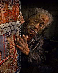 In the mid 1970s, Blackmon settled in Milwaukee where he established his “World Revival & Interprice Center,” a combination storefront church and neighborhood self-help agency that included a food pantry, hand laundry and shoe repair shop. To promote his shoe repair shop, Prophet made hand-lettered signs that attracted the attention of local collectors and led to the creation of his first figurative painting in 1984.