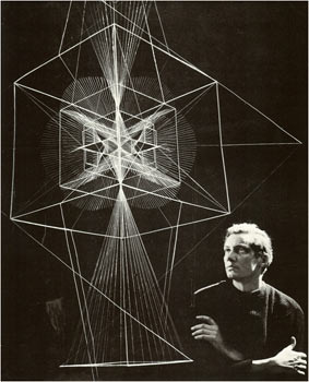 Richard Lippold, a Milwaukee born sculptor, created open-aired constructions made from steel, aluminum, wire and plaster. Using an engineering and design background, his constructions were among the first in American sculpture to use polished, industrial materials. These constructions harnessed a kinetic quality by incorporating the space and light of the areas they occupy. As a contemporary of the first-generation postwar New York School of artists, his work shares the sensibilities of that era, emphasizing a dynamic break with traditional artist images and methodologies.