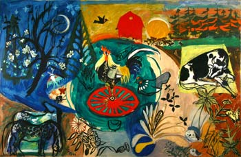 In a Milwaukee Journal article of October 30th, 1966, Ruth quotes Pablo Picasso as saying, “The World is a marvelous spectacle…I do not seek, I find”. For her own early work she drew upon vital and broad 20th Century modern influences and for later work the sophisticated arts of Japan. Together with her artist husband, Schomer Lichtner, she was part of a generation’s movement away from the influences of the German academies in Wisconsin. Being part of the Social Realist movement of the 1930’s she had studied everyday people and places for her themes, sometimes creating monumental expressions like the mural from the Hudson, Wisconsin Post Office, now exhibited in the Museum of Wisconsin Art.